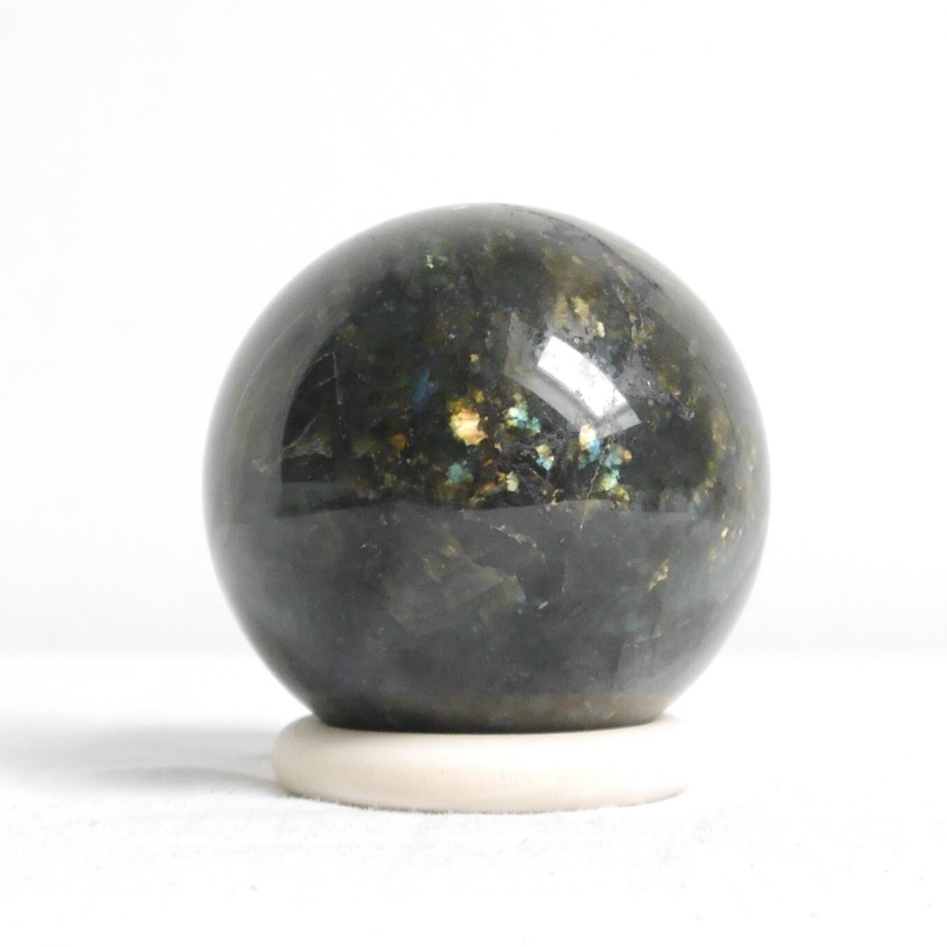 Reinigen: kan met water, maar droog haar dan gelijk af en laat het niet in aanraking komen met chemicaliën en/of zeep. Wat ook een fijne manier is, is om labradoriet tegen hematiet aan te leggen.